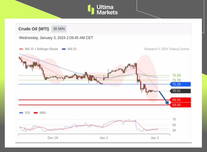 I confirm my intention to proceed and enter this website Please direct me to the website operated by Ultima Markets , regulated by the FCA in the United KingdomIn this comprehensive analysis, Ultima Markets brings you an insightful breakdown of the WTI OIL for 2nd January 2024.